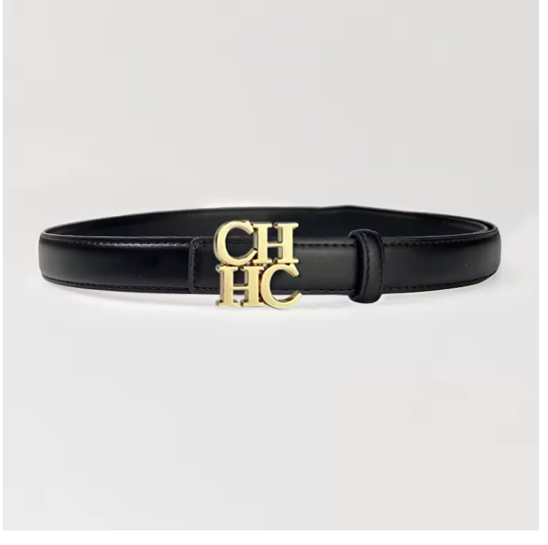 Cinturón con monograma CHHC para mujer, accesorio único de cuero PU con adorno de diseñador para jeans y pantalones cortos, regalo exclusivo